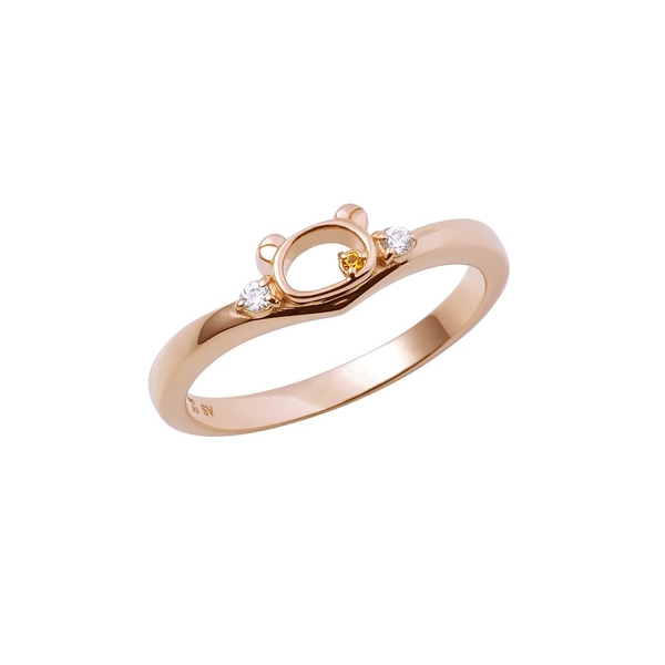 すっきりとしたV字フォルムに、リラックマのシルエットとイメージカラーのストーンをセットしました。ふんわり優しい世界観と遊び心をぎゅっと閉じ込めた、大人可愛いデザインです。