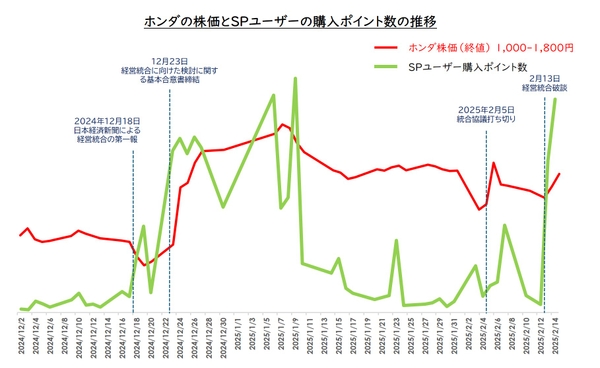 今回は、ホンダと日産自動車の経営統合で揺れたStockPointユーザー(以下、SPユーザー)の約2カ月間の動向をレポートします。