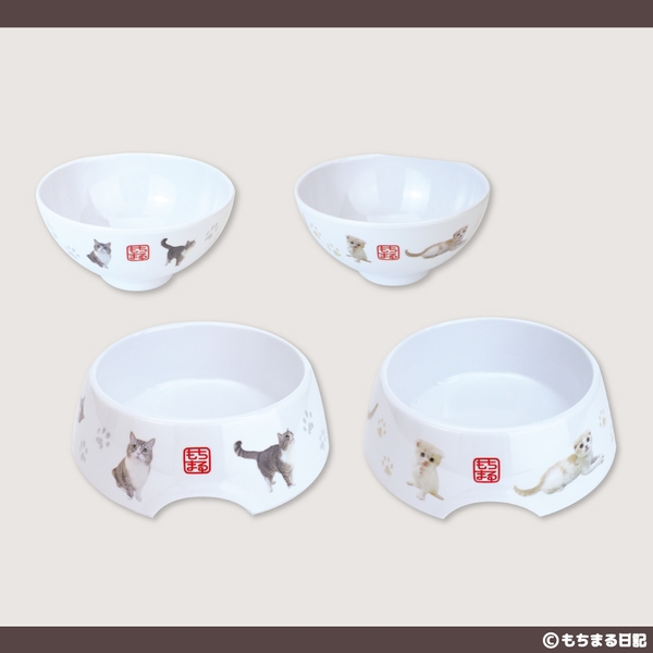 もちまる・はなまるがそれぞれプリントされていて、お茶碗とフードボウルがセットになっています。
