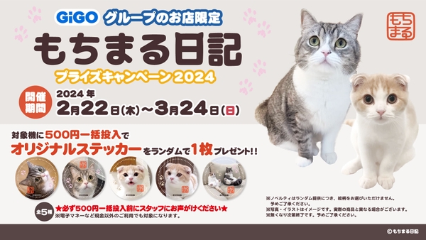 株式会社GENDA GiGO Entertainment(本社:東京都港区 代表取締役社長:二宮 一浩 以下当社)は GiGOグループのお店におきまして、YouTubeチャンネル『もちまる日記』とコラボしたキャンペーンを「猫の日」にちなんだ2024年2月22日(木)より開催いたします。