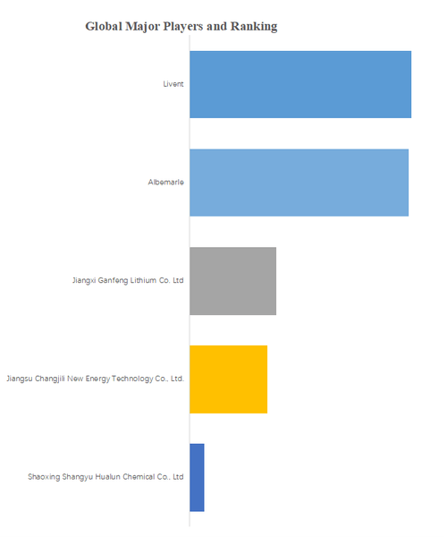 QYResearchのトップ企業研究センターによると、n-ブチルリチウムの世界的な主要製造業者には、Livent、Albemarle、Jiangxi Ganfeng Lithium Co. Ltd、Jiangsu Changjili New Energy Technology Co., Ltd.、Shaoxing Shangyu Hualun Chemical Co., Ltdなどが含まれている。2022年、世界のトップ3企業は売上の観点から約64.0%の市場シェアを持っていた。