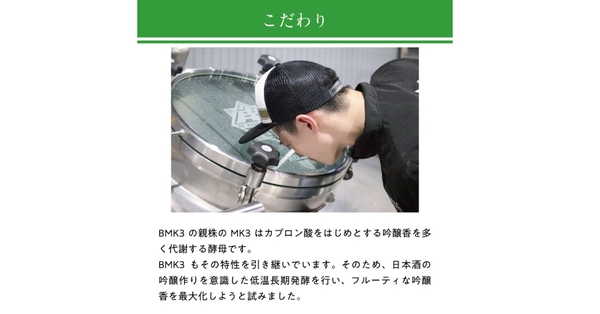 日本酒酵母から育種した醸造用酵母「BMK3」を使用