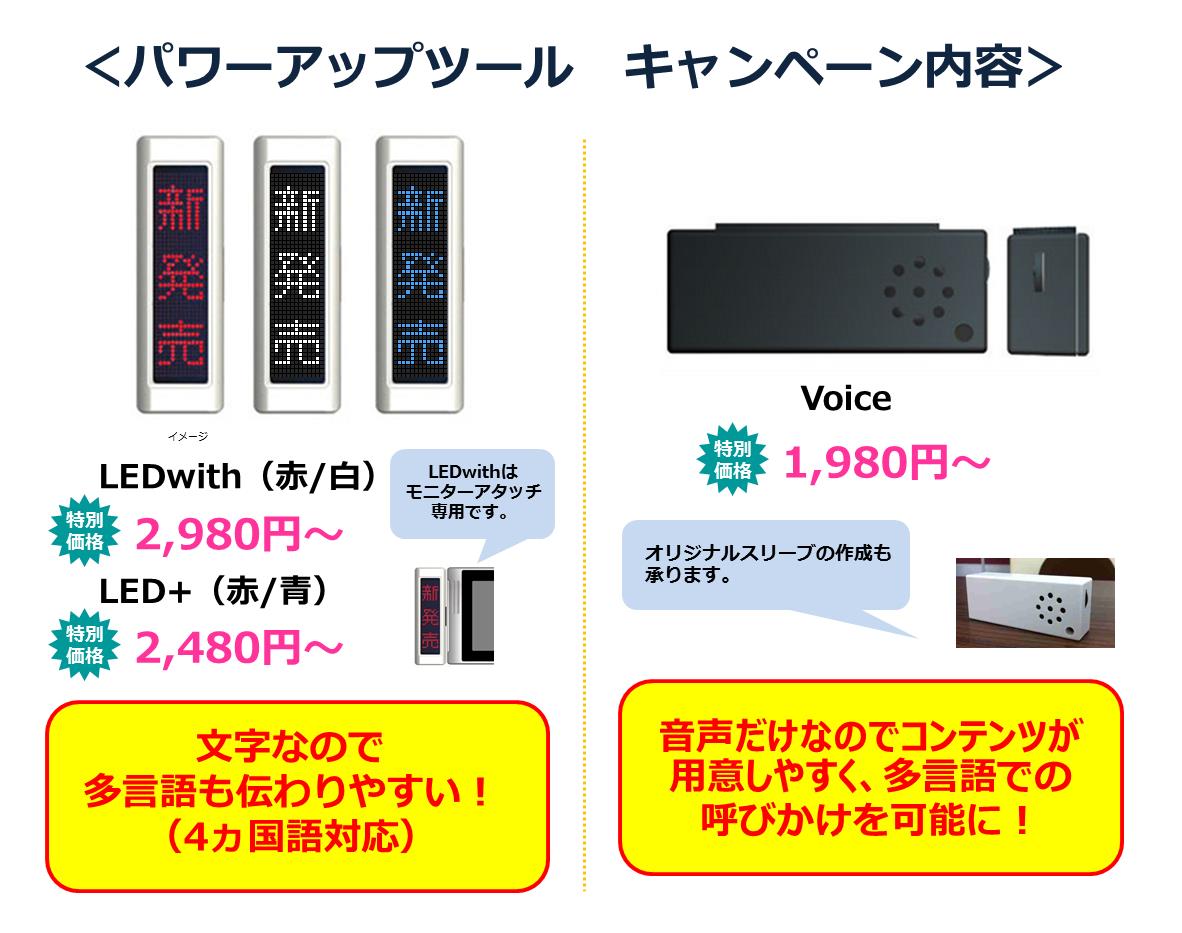 店頭用デジタルサイネージを取り扱う株式会社impactTVでは、サマーセール第3弾としてインバウンド対策にご活用いただけるモニタ以外の人気販促ツール3機種(LED文字表示機「LED+」「LEDwith」と音声POP「Voice」)を特別価格で提供するキャンペーンを実施いたします。