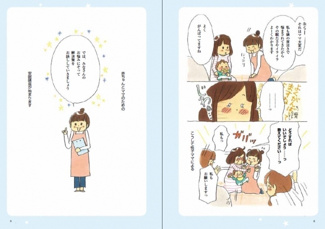 マンガを担当したのは、「こげぱん」のキャラクター原案などでおなじみのたかはしみきさん。自身も、長男の夜泣きに悩んでいる中、『赤ちゃんにもママにも優しい安眠ガイド』を活用したといい、その時の経験もマンガ化に生かされています。