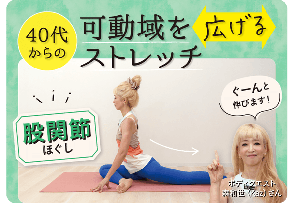 ヨガ&エクササイズトレーナーでもある森和世(Kaz)さんがご紹介する「股関節ほぐし」ストレッチを実践して、動ける体を取り戻していきましょう!