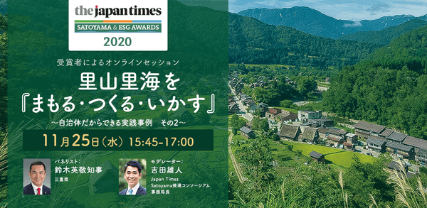11月25日 鈴木英敬 三重県知事が登壇 The Japan Times Satoyama & ESG Awards 受賞者による特別オンラインセッション