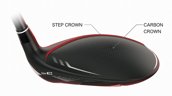 軽量カーボン素材複合クラウンにより、余剰重量を最適配分することで慣性モーメントが増大。クラウン部のステップ形状との相乗効果による低重心化で高く強い弾道で大きな飛びを実現します。