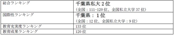 麗澤大学(千葉県柏市/学長:徳永澄憲)は、英教育専門誌「タイムズ・ハイヤーエデュケーション(THE)」を運営するES Global 社の世界大学ランキング日本版において、総合ランキング(千葉県私大)で2 位、国際性ランキング(千葉県)で1 位を獲得、全国で12位にランキング入りする高評価をいただきました。