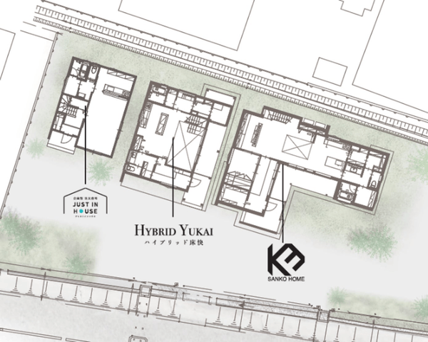 2022年の新商品であるハイグレードモデル『K3(ケースリー)』をいち早くご覧いただける他、主力ブランドであるオリジナルブランド『ハイブリッド床快(ゆかい)』、企画型注文住宅『JUST IN HOUSE(ジャストインハウス)』のモデルハウスなど、サンコーホームの家づくりのリアルを体感いただける展示場です。