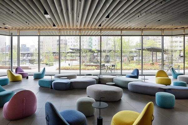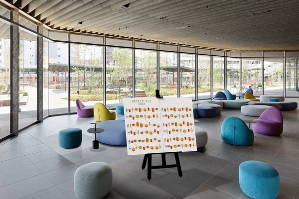1 都市部にありながら緑豊かなガーデンエリア「みやぐりん」や電車や駅のホームが臨めるOMOベースに設置
