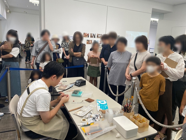 先日、特別展示された「注がれるコーヒー」に続き、今回は地元・広島にちなんだ最新作「もみじ饅頭」を含む注目の3作品が新たに加わり、広島三越1階で先行展示されています。