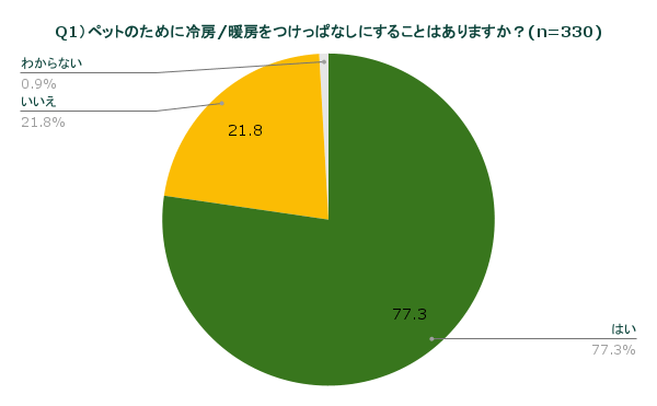 Q1)ペットのために冷房/暖房をつけっぱなしにすることはありますか?(n=330)