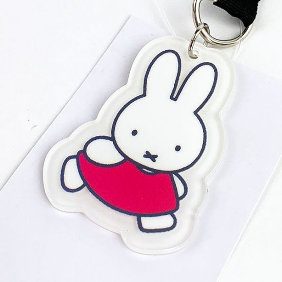 お馴染みの、オレンジのお洋服に身を包んだミッフィーのキーホルダーです。ダイカットされたアクリルのプレートが、そのままキーホルダーに♪背景のイエローも、ミッフィーらしさを感じますね