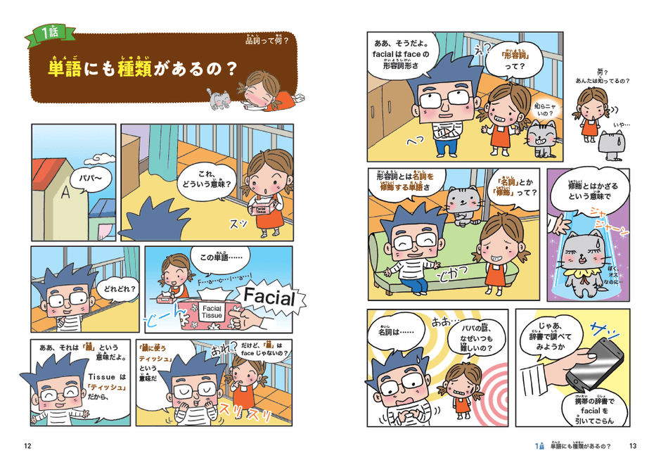 本書は、私の小学生の娘ハナに英語の品詞を教えたときのやりとりが基になっています。