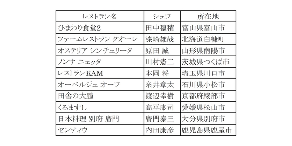 株式会社ジャパンタイムズでは、2021年から日本発信のレストランセレクション「Destination Restaurants List」を発表しています。Destination Restaurants List は「日本人が選ぶ、世界に伝えたい日本のレストランリスト」として発足し、ジャパンタイムズの理念である「日本人の視点で、世界の人々に、日本の姿を伝える」を軸に、食の専門家、フーディーとして名高い、辻 芳樹、本田 直之、浜田 岳文の3氏が選考にあたり、日本各地に点在する訪れるべき10店を毎年選出しています。今年は以下のレストランが選ばれました。