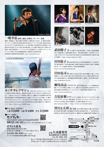 重要無形文化財総合指定保持者の一噌幸弘が内外で活躍するアーティストと共に開催する和笛の超絶世界の第2弾。