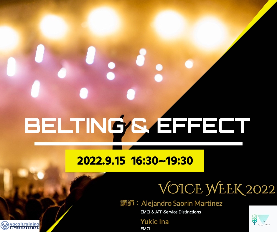 【内容】ベルティング、クリーン、グロウル、ラトル、スクリーム、ホイッスルヴォイスなどに関する座学、エクササイズ実演を行います。科学的エクササイズの組み合わせで、様々な種類の声のクオリティーを習得します。
