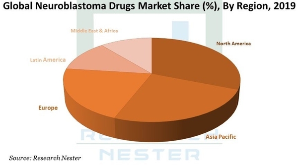 北米の神経芽細胞腫薬の市場は、技術的に強化された薬の増加と神経芽細胞腫の発生率の増加により、この地域を支配すると予想されます。さらに、ヘルスケアセクターへの投資の増加と神経芽細胞腫の治療のための希少疾病用医薬品の承認が市場の成長を後押ししています。アジア太平洋地域は、小児癌ベースの急増につながる新興国の存在により、最も急速に成長する市場であると予想されています。ヨーロッパの市場は、がん治療のための小児医療センターの数の増加と健康に関する意識の高まりにより、大幅な成長を遂げると推定されています。