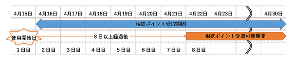 <例>4月15日に使用開始の定期券の場合、4月22日からポイントの受け取りが可能となります。