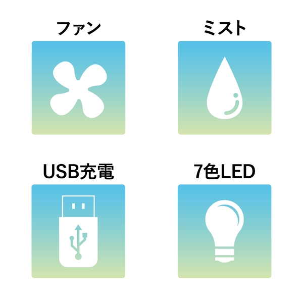 「パーソナルミストファン」夏は扇風機としてミスト状の風が涼しく、冬は乾燥対策の加湿器として使用できる年中使える商品となっております。