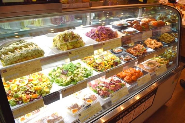 旬の食材を使用した彩豊かなサラダや出来立てのおかずをお好みの量お買い求めいただけます。また、有機玄米を使用したおにぎりやお弁当など種類豊富に取そろえます。