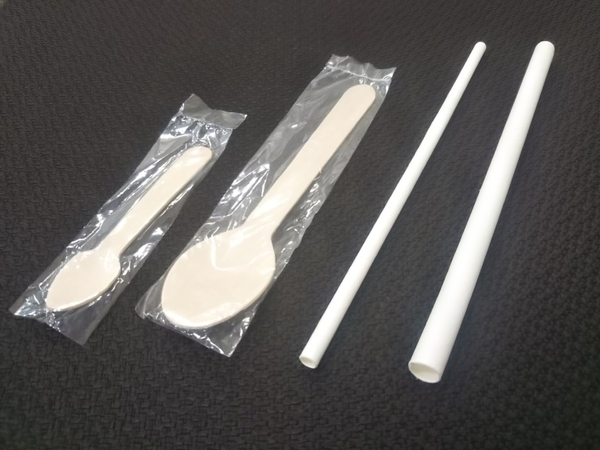 環境に配慮したカトラリーとして、木製スプーンと紙製ストローを採用いたしました。