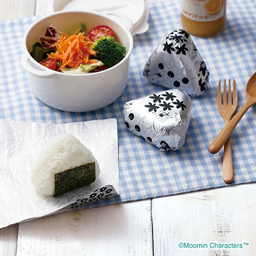 外に持って出るおにぎりを美味しく楽しく包むおにぎり専⽤ホイル「おにぎりホイル」は弊社でも⻑年愛されている商品です。そのおにぎりホイルにかわいいムーミンのデザインを追加!サンドイッチを包んだり、ランチボックスに敷いてもGood!さらに、製品のシート素材にFSC®認証紙(注1)を新採⽤で環境にも優しい商品です。