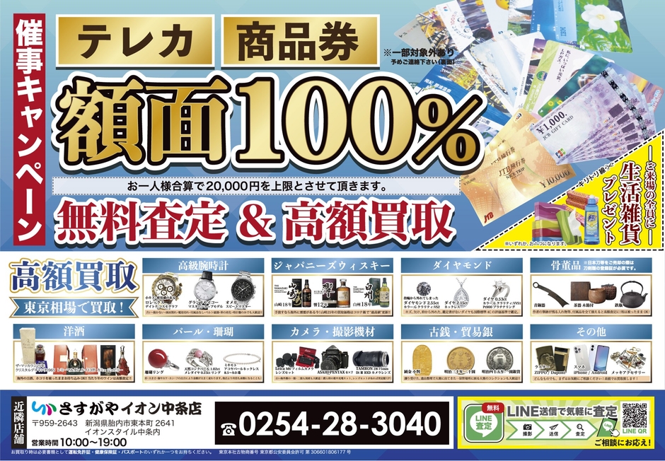テレホンカード/商品券等は額面100%でお買取りいたします。