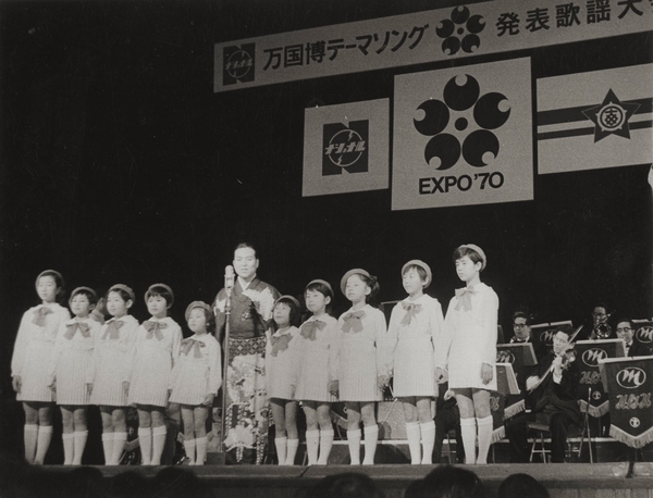 競作作品の中で唯一、子供達とのコーラスで歌唱されている。「こんにちは」と歌う三波春夫の歌唱に、子どもたちが「こんにちは」と返すコーラスが印象的。歌詞に込められた「未来に向けて世界が調和し平和になりますように」という真意をこのコーラスで表現したという。