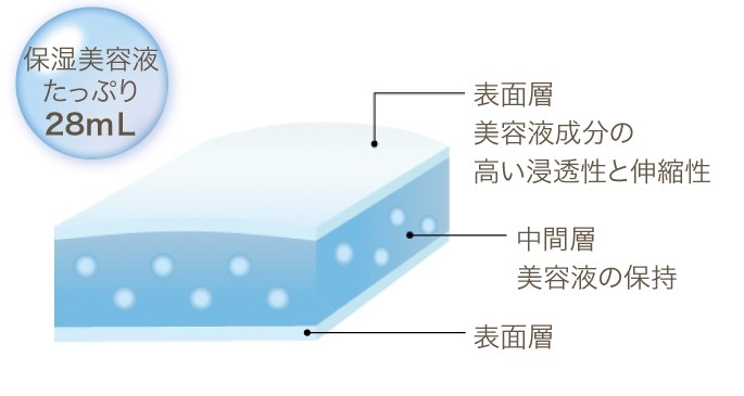 保湿美容液約28mLを配合し、角層すみずみまで浸透させます。