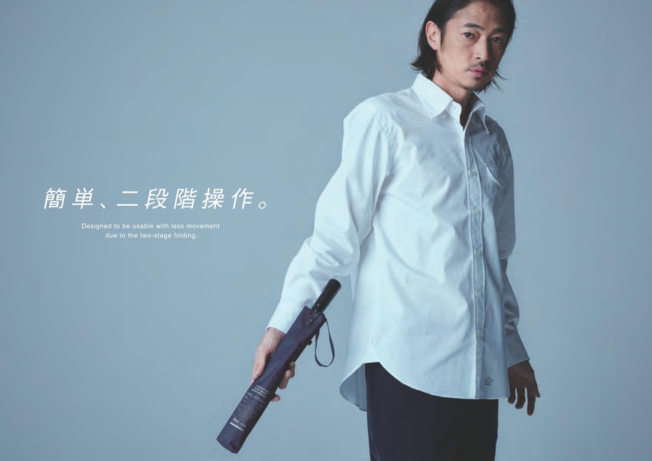 しかしながら、日傘は女性が持つものという認識がまだ高く、その認識を変えていく施策として、雨傘・日傘どちらの機能もハイスペックな晴雨兼用折り畳み傘というジャンルで「持ち歩く習慣」を提案し、男性が自然に日傘を使用するシーンを作り出します。