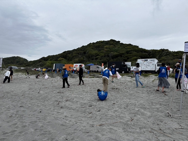 雨模様のなか、ブランドアンバサダーの萩原健太さん・仁枝拳二さんと、80名以上の有志がビーチクリーンアップに参加。サーフィンの街・豊橋市の地域住民に愛される小島海岸の保全活動に取り組みました。
