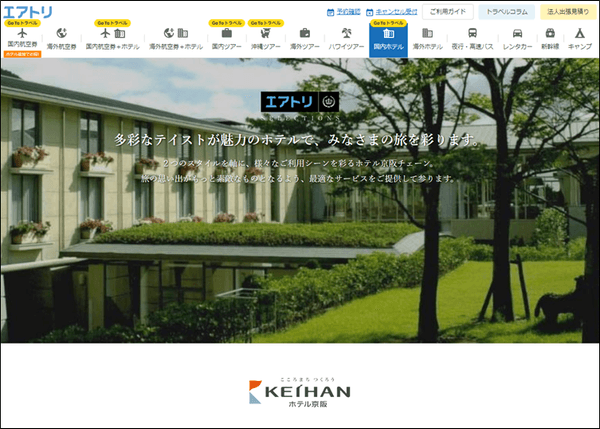 ・エアトリ SELECTIONS 専用ページ:https://domhotel.airtrip.jp/kokunai/recommend/keihan/