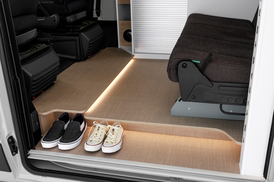 gioiaの最大の特長は、デュカトの広い居住空間を活かした、ベッド面積の広さです。常設ベッドとフロアベッドを合わせて、大人5名の就寝が可能になります。