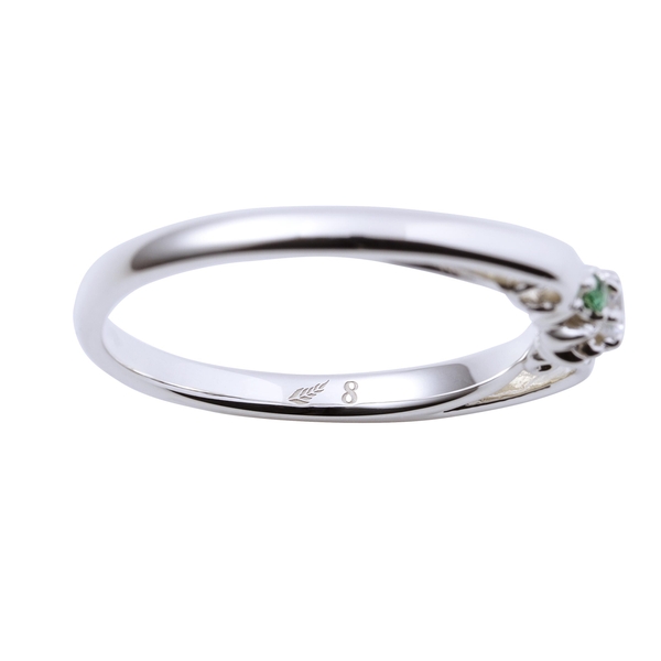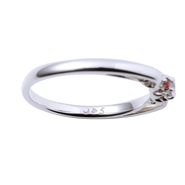 沙悟浄モデルの内側には武器である錫月杖のシルエットと「5」の刻印を施し、脇石にはアイカラーストーンを2石セット。石座部分はさりげなく蓮の花をデザインしました。