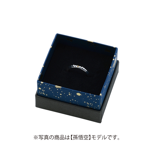 孫悟空モデルの内側には額の金鈷のシルエットと「9」の刻印を施し、脇石にはアイカラーストーンを2石セット。石座部分はさりげなく蓮の花をデザインしました。
