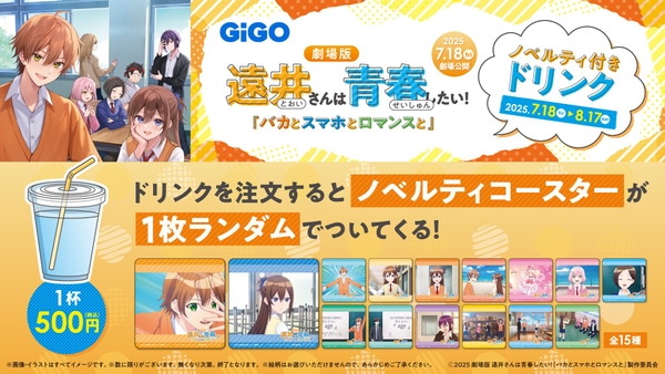 株式会社GENDA GiGO Entertainment(本社:東京都港区 代表取締役社長:二宮 一浩 以下、「当社」)は、7月18日(金)より全国の映画館で公開される【劇場版】 遠井さんは青春したい「バカとスマホとロマンスと」とタイアップしたノベルティ付きドリンクを同日7月18日(金)より販売いたします。
