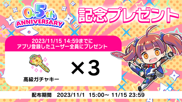 キャンペーン期間内にログインするだけで、「高級ガチャキー」3個が必ず貰えます。