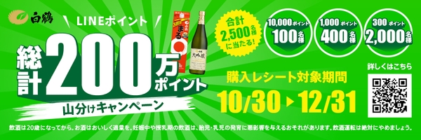 白鶴商品購入でLINEポイントが当たる「白鶴LINEポイントキャンペーン」を10月30日から開催
