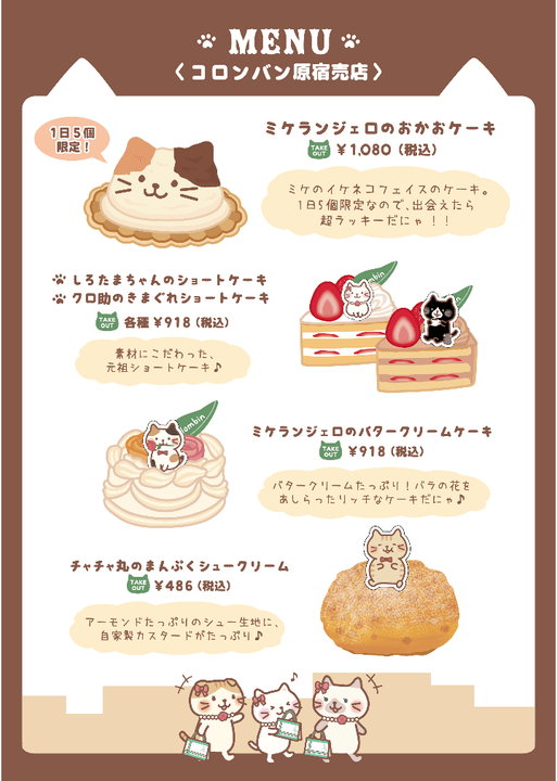 *コロンバン原宿は、全てテイクアウトのみとなります