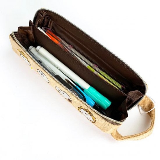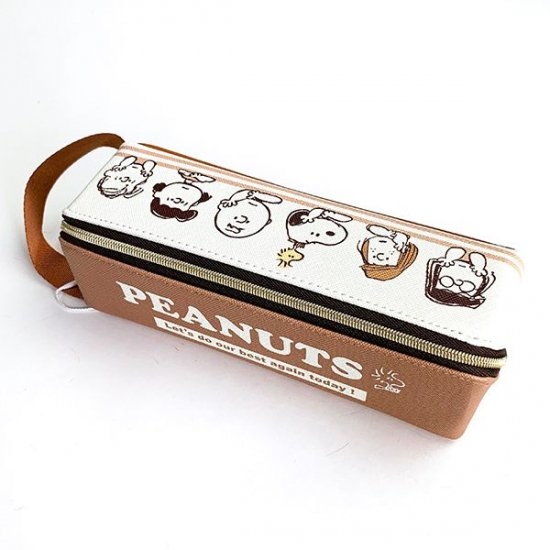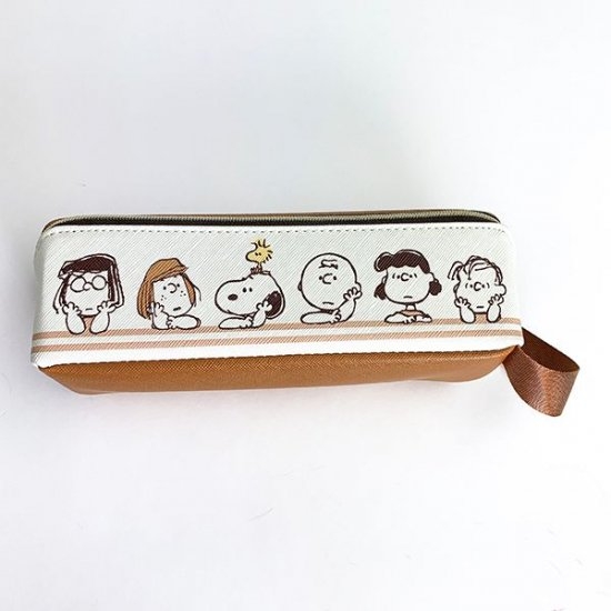 フレンズが大集合のデザインの、ペンポーチが入荷しました。ホワイト×ブラウンのシックなカラーに、スヌーピーやチャーリーブラウンたちが並んでいるキュートなイラスト♪開くとトレーのようになるヒラクトレー方式のペンポーチなので、収納力も抜群です。