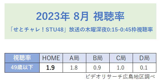 【せとチャレ!STU48】2023年8月・月間視聴率 49歳以下1位