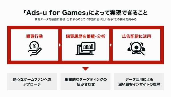 株式会社アドウェイズ(本社:東京都新宿区、代表取締役社長:山田 翔、以下アドウェイズ)は、オンライン上の実購買データを活用し、高精度なターゲティング設計を可能にするゲーム業界特化型ソリューション「Ads-u for Games(アズユーフォーゲームス)」の提供を開始いたしました。