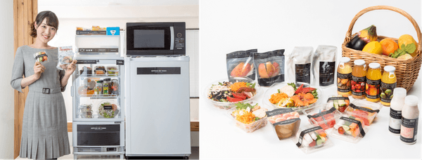 オフィスに冷蔵庫や冷凍庫を設置するだけで、健康と美味しさにこだわったサラダやフルーツ、お惣菜などが定期的に届けられる食の福利厚生サービスです。