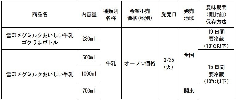 雪印メグミルク株式会社(本社:東京都新宿区、代表取締役社長:佐藤 雅俊)は、次の100年に向けて牛乳のブランドを刷新した『雪印メグミルクおいしい牛乳』(「ゴクうまボトル 230ml」 、500ml、1000ml)を2025年3月25日(火)より全国にてリニューアル発売、関東エリアでは少人数世帯の増加に対応した新容量750mlを発売いたします。
