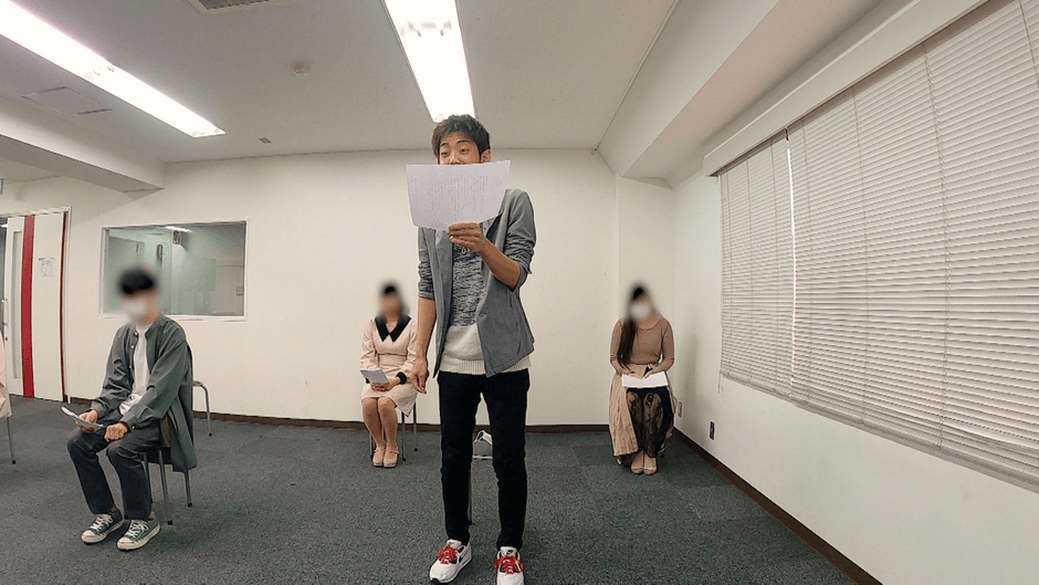 オーディション直前。間もなく巣立っていく高須賀さんと金子さんに「魅力あふれる声優になってほしい」という想いを込めて最後の指導を行う竹下さん。2人は竹下さんが用意したさまざまな要素を盛り込んだ演技の模擬課題に挑み、自己PRの最終チェックをしてもらいます。