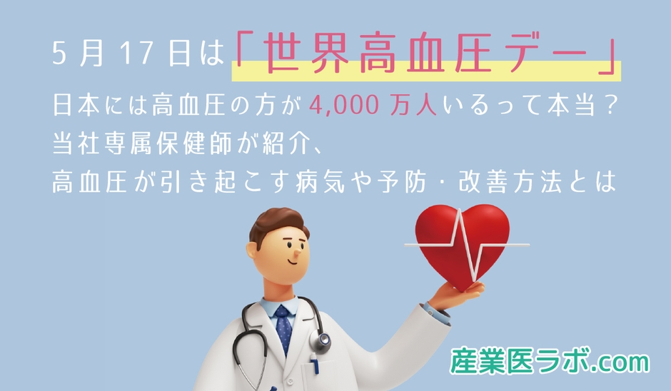 5月17日は「世界高血圧デー」 日本には高血圧の方が4,000万人いるって本当? 当社専属保健師が紹介、高血圧が引き起こす病気や予防・改善方法とは