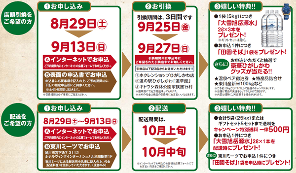 さらに「大雪旭岳源水」や「田園そば」も嬉しい特典として付くので、この機会をお見逃しなく!