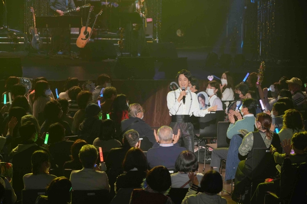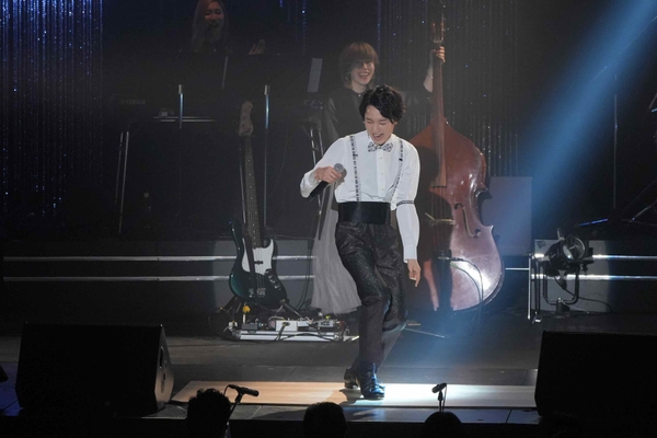 今年2月の新曲「女のはじまり」で新境地と言える“女唄”が好評の青山 新が「春よ、来い(松任谷由実)」「難破船(中森明菜)」などの“女唄カバー”や、「シングシングシング」「フライミートゥーザムーン」などスタンダードなジャズナンバーにも挑戦、特技の“タップダンス”も披露するなど、全19曲を熱唱し500名の観客を沸かせた。