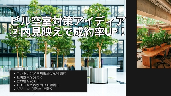 時には植物を配置する等、低予算でもビルを魅力的にする方法を検討していきましょう。